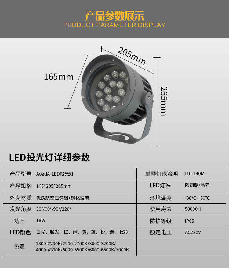 投光燈專區(qū) 主頁 > 產品中心 > 投光燈專區(qū) > 戶外射燈超遠射程光束燈光柱燈窄光燈聚光投光燈 產品品名:新款LED投光燈;聚光投光燈 產品品牌:忠信照明 輸入電壓:AC85-265V 產品重量:5.85KG 產品功率:24W;36W; 燈珠芯片:歐司朗/晶元大功率芯片 產品顯指:大于80 防水等級:IP65 發(fā)光角度:45-60度 產品材質:優(yōu)質航空壓鑄鋁材+鋼化玻璃 質保期限:兩年 發(fā)光色溫:正白;暖白;紅光;黃光;藍光;藍光 適用場地:戶外大樓墻體亮化;橋梁照明工程;古建筑物照明;公園樹木亮化 廣告招牌;廣場射燈等照明